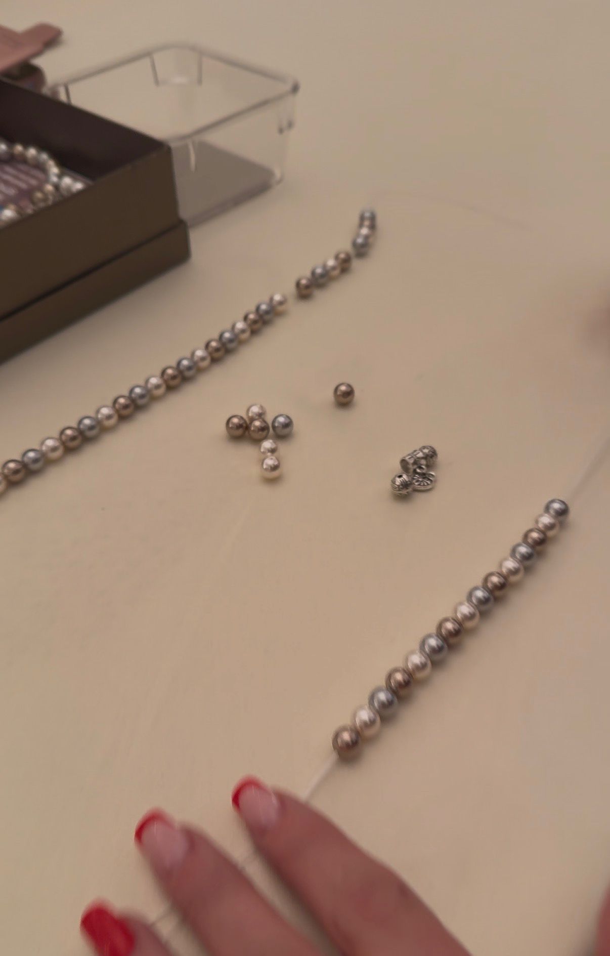 Na kurze vzniká náramok, ktorý má osobný význam. Každý kameň, každý odtieň, každé usporiadanie perál či polodrahokamov odráža vnútro svojej nositeľky.