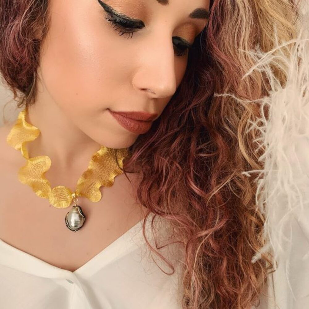Keď jemný šperk, tak určite by som Vám vyrobila náhrdelník z Titánovej stuhy, ktorý rada kombinujem s rôznymi príveskami.Titánová stuha má jedinečné vlastnosti, môžete donekonečna využívať svoju kreativitu a meniť jej tvar, môže byť v rôznych farbách, dĺžkach, je protialergická a nádherne dotvorí ženský dekolt. V zlatej farbe pôsobí elegantne, prívesok veľká shell perla je zdobená zirkónmi.