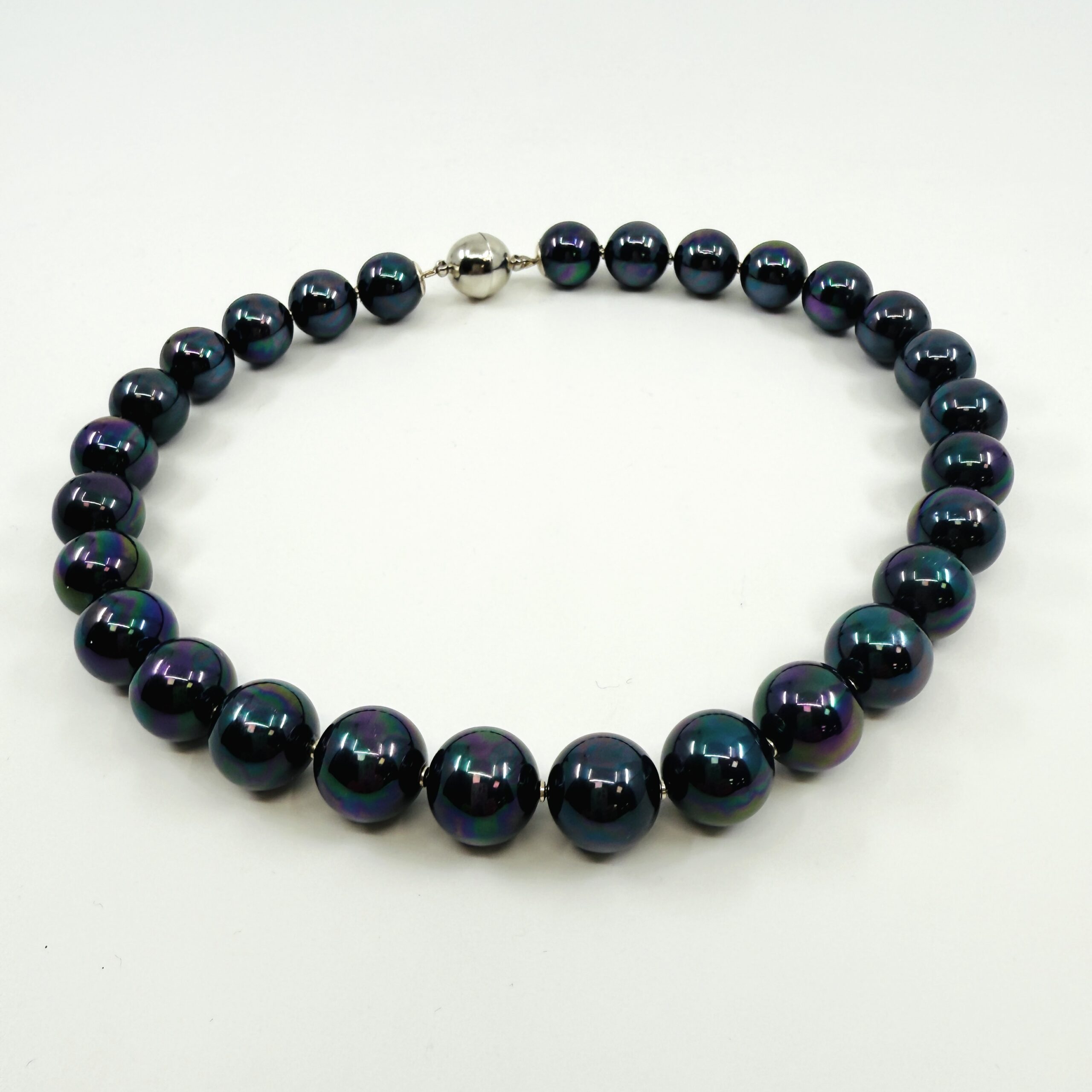 Women’s softness náhrdelník som vytvorila zo Shell perál v prevedení tahitskej perly, ktorá vyniká svojím hladkým povrchom a hlbokým, perleťovým leskom v odtieňoch sivej až tmavomodrej.