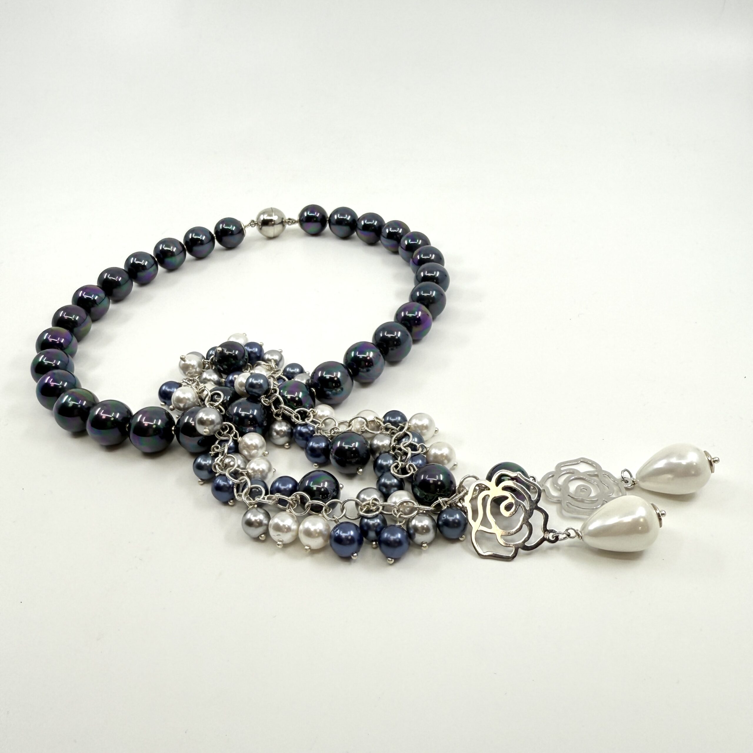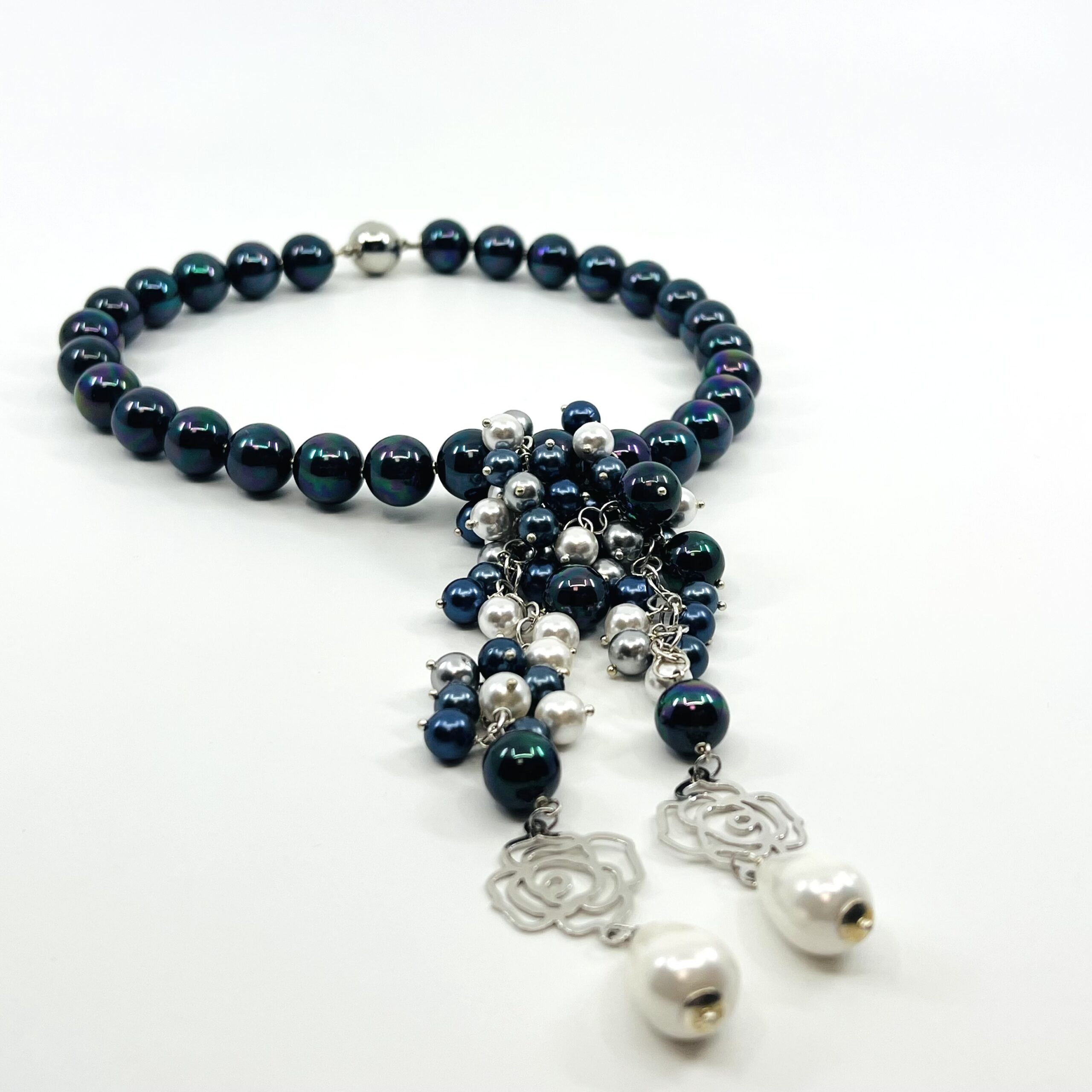 Variabilný dizajn umožňuje nosiť náhrdelník v dvoch štýloch – ako minimalistický kúsok s jedinou perlou alebo ako výrazný šperk so zdobeným strapcom. Strapec je zložený z bohato kombinovaných bielych, sivých a tmavomodrých Shell perál, ktoré spolu vytvárajú harmonickú hru farieb a textúr, inšpirovanú oceánom.